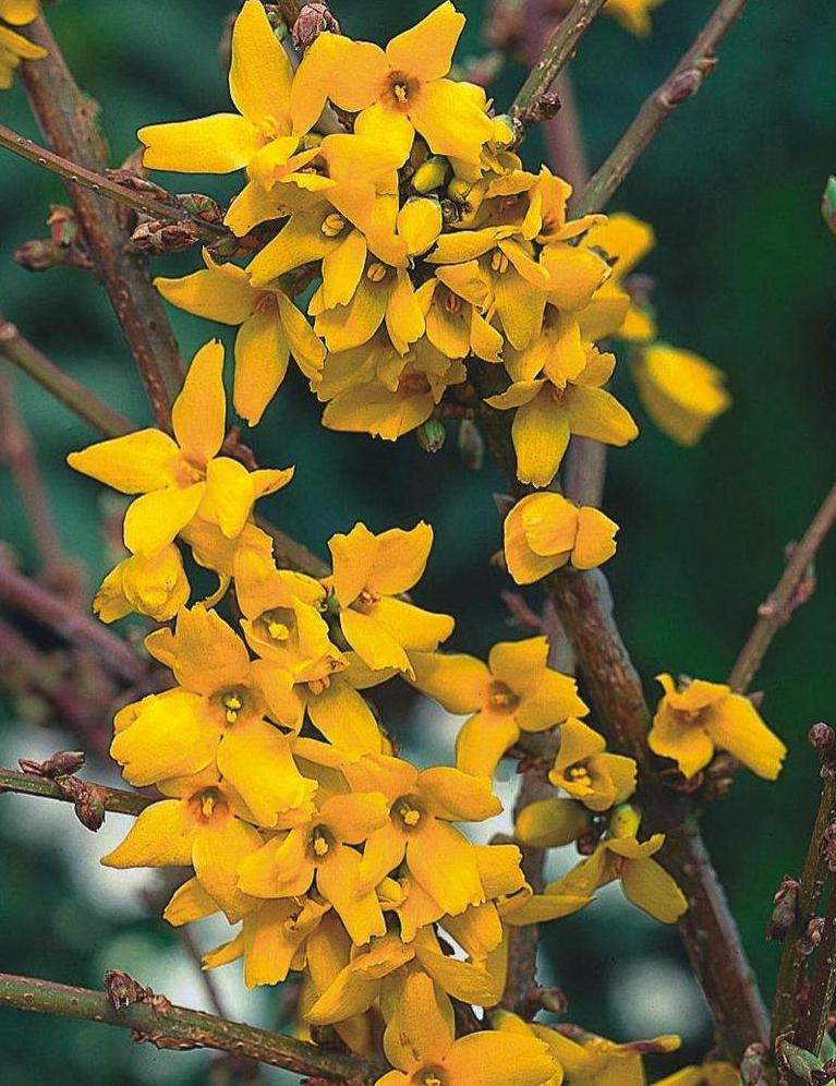 Широкораспростёртый декоративный кустарник высотой и шириной 200-250 см. Листья длиной 5-7 см, тёмно-зелёные, зазубренные по краю. Цветки золотисто-жёлтые, очень крупные, длиной до 4 см, колокольчатые со сросшимися у основания широкими лепестками, слегка душистые. Цветение в апреле в течение 2-3 недель, до распускания листьев, очень обильное, по всей длине побегов. Место солнечное. Почва умеренно влажная, лёгкая. Зона 5 (до -23ºС). В суровые зимы наблюдается подмерзание цветковых почек. Подходит для живых изгородей. Очень хорошо переносит обрезку