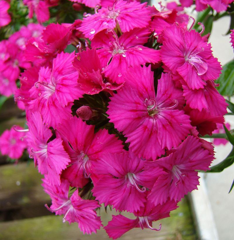 Гвоздика турецкая Пинк Бьюти (Pink beauty) - высевают в открытую почву в конце мая. Через две недели появляются первые всходы. Рассаду гвоздики «Пинк бьюти» необходимо проредить, чтобы расстояние между растениями было до 25 см. Период цветения длится один месяц с июня до июля. Цветочки очень мелкие и имеют махровую структуру. Они собираются в соцветия. Лепестки окрашены в нежно-розовый оттенок. Высота взрослого кустика 50 см. Сорт семян гвоздики «Пинк бьюти» используют для оформления рабаток и цветников. Также растение можно использовать в одиночных посадках.