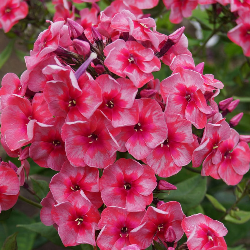 Флокс метельчатый Старс энд Страйпс (Phlox paniculata) - уникальный сорт, который изысканно и грациозно украсит самый богатый и роскошный сад. Своеобразная изюминка отмечается в кораллово-розовых округлых цветках с серебристо-молочными штрихами посередине и карминовым глазком у основания соцветия. Крупноцветковые метельчатые соцветия компактно размещаются на упругом прямостоячем стебле высотой 70 см, который шикарно разрастается на умеренно влажных почвах в полутенистых местах. Такие щедрые букеты станут незаменимым ярким элементом на газоне и понадобятся для составления изумительных миксбордеров.