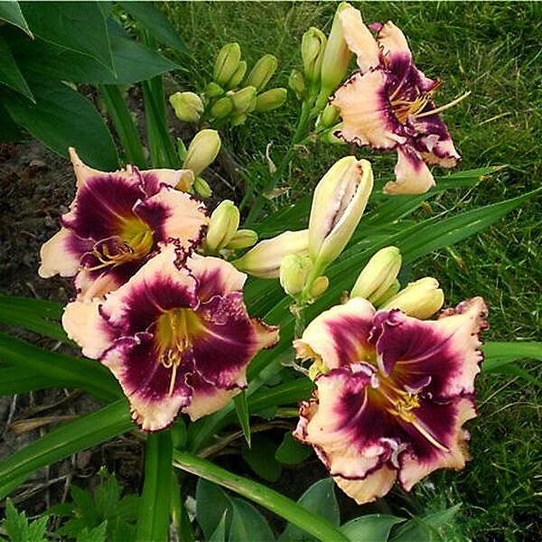 Лилейник Sabine Baur - многолетнее растение до 65 см высотой, с прямыми дуговидно изогнутыми, постоянно зелеными листьями. Цветки крупные, до 15 см в диаметре, цвета слоновой кости, с большим четким черно-пурпурным глазом и пузырчато-гофрированным окаймлением, собраны в раскидистые соцветия. Цветение обильное. Сорт раннесреднего срока цветения, повторно цветущий. Предпочитает освещенные места и проницаемые, влажные, плодородные почвы. Засухоустойчив. Зимостоек. Долговечен, без пересадки растет 5-6, до 10 лет. Размножается делением корневища, в апреле-мае или в сентябре. Стабильно декоративен.