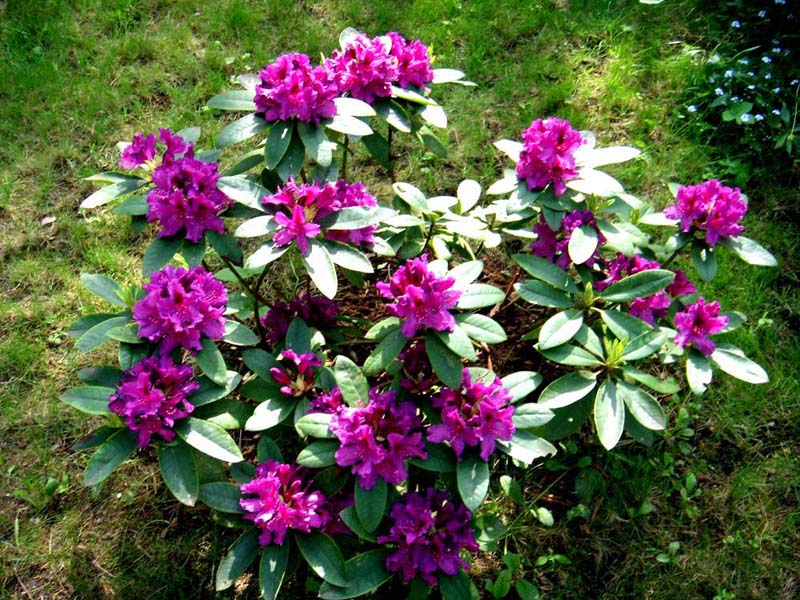 Рододендрон Rasputin - быстрорастущий широкий куст с устойчивыми фиолетовыми цветами, украшенными большим темнопурпурным глазком, края лепестков бахромчатые. Куст крепкий, сплющенный. Листья темно-зеленые, в очень большом количестве. В первые годы выращивания требует очень интенсивной обрезки. Морозостойкость -27С. Высота 1,2-1,5 м. Период цветения май - июнь.