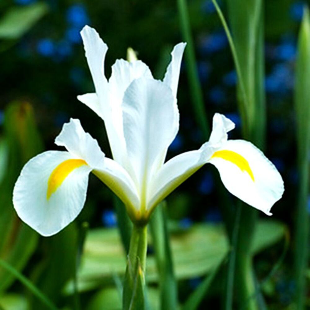 Ирис голландский Аляска имеет белые цветы, легко вписываются в любой садовый стиль! Изысканные ирисы с единственным украшением в виде золотого росчерка на кристально-белых фолах – действительно универсальные садовые растения. Отлично комбинируются с тюльпанами и многолетниками. За красоту и долгую жизнь в вазе их высоко ценят флористы. Их вполне можно отнести к беспроблемным луковичным, не требующим внимания, а также затрат времени и средств со стороны садовника. Один из ключевых моментов – выбор правильного места посадки с правильной почвой. Идеальный вариант – рыхлая, проницаемая и питательная почва с нейтральной или низко щелочной реакцией. При выборе места необходимо учитывать, что голландские ирисы не переносят избыточной влаги. Они не нуждаются в регулярных подкормках. Древесная зола или минеральное комплексное удобрение за неделю до цветения – это всё, что им нужно. Как только вы увидите некоторое утолщение между листьями (будущий цветок) – можно подкормить. Эксперименты по выращиванию голландских ирисов можно начать с балконного контейнера.