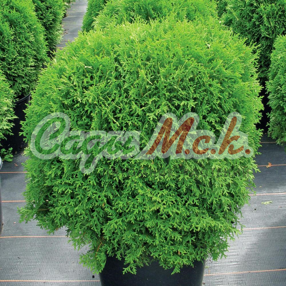 Туя западная Globosa Compacta - карликовый кустарник 0,6-1 (1,2) м высоты и до 1 м диаметром. Крона шаровидная, плотная. Побеги прямые, плоские, приподнятые вверх, перекрывающиеся. Хвоя чешуевидная, весной светло-зеленая, летом зеленая, зимой серовато-зеленая или коричневато-зеленая.
