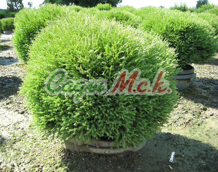 Карликовый шаровидный хвойный кустарник с ажурной кроной. Диаметр растения не превышает 0,9 м. В 10-летнем возрасте диаметр не более 0,7 м. Не требует стрижки для сохранения идеальной шарообразной формы долгое время. Хвоя нитевидная, серо-зеленая, мягкая, кружевная. Сохраняет свой цвет в зимний период, со слегка бронзовым оттенком. Предпочитает солнечные места, умеренно влажные, хорошо дренированные почвы. Рекомендована обрезка в начале весны или в середине лета для формирования формы идеального шара