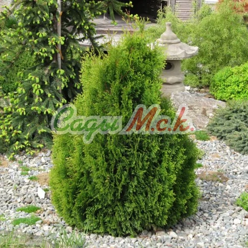 Туя западная Miky - карликовый хвойный кустарник с ширококонической формой. Растет медленно, по 8 см в год. В 10 лет достигает 1 м в высоту, в 20 лет высота 1,6-2 м диаметр кроны 1 м. Хвоя нежная, темно-зеленая, блестящая. Сорт предпочитает солнечные места.